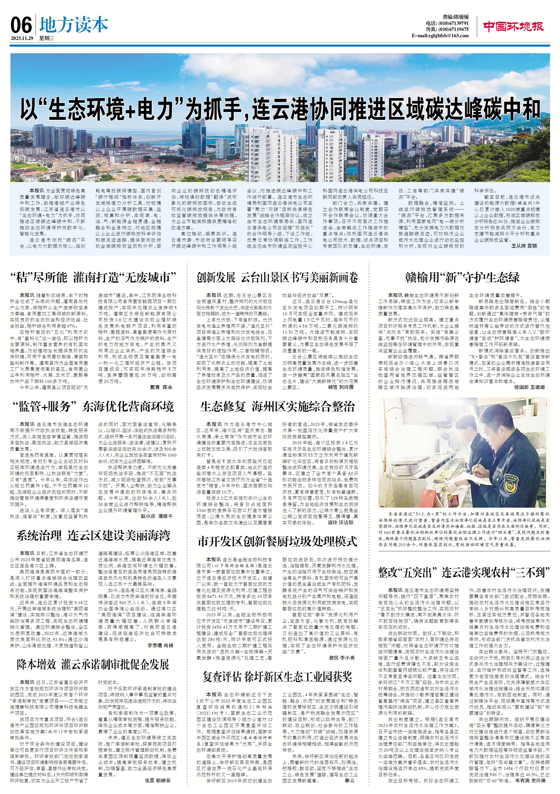 This newspaper 赣榆生态环境局不断创新工作思路,转变工作方法,切实以新举措新作为落实高水平保护,助力绿色高质量发展。