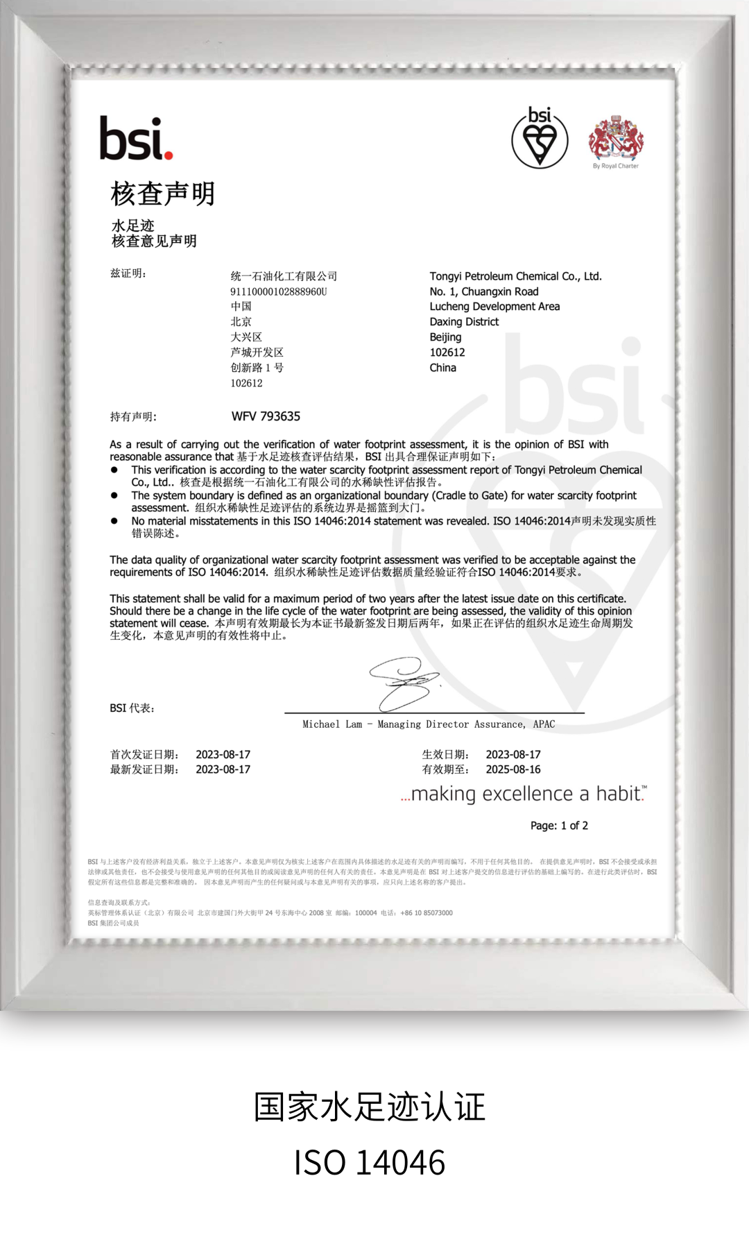 Thanks to the early awareness of carbon reduction, in recent years, with the continuous efforts of the ESG Management Committee, according to the goal of green and low-carbon products, all products have their own subdivided carbon reduction strategies and roadmaps. On the one hand, we will upgrade the T-lab low-carbon technology laboratory, develop patented carbon reduction technologies, give full play to the scientific research and technological advantages of the institute, inject carbon reduction technology into enterprises and products, and create patented carbon reduction technologies. On the other hand, since 2020, it has taken the initiative to take voluntary emission reduction measures in accordance with the provisions of the National Certified Voluntary Emission Reduction (CCER), and has successively implemented the organization-level greenhouse gas accounting and certification based on the global standard ISO 14064, the carbon footprint accounting and certification based on ISO 14067, and passed the ISO14046 water footprint certification. Among them, the certification of carbon footprint and water footprint means that it has unified the dual measurement capabilities of carbon emission management and water resource utilization management, and according to the carbon neutrality synergy mechanism, it will also provide comprehensive collaborative guidance for upstream and downstream enterprises to achieve water conservation and emission reduction.