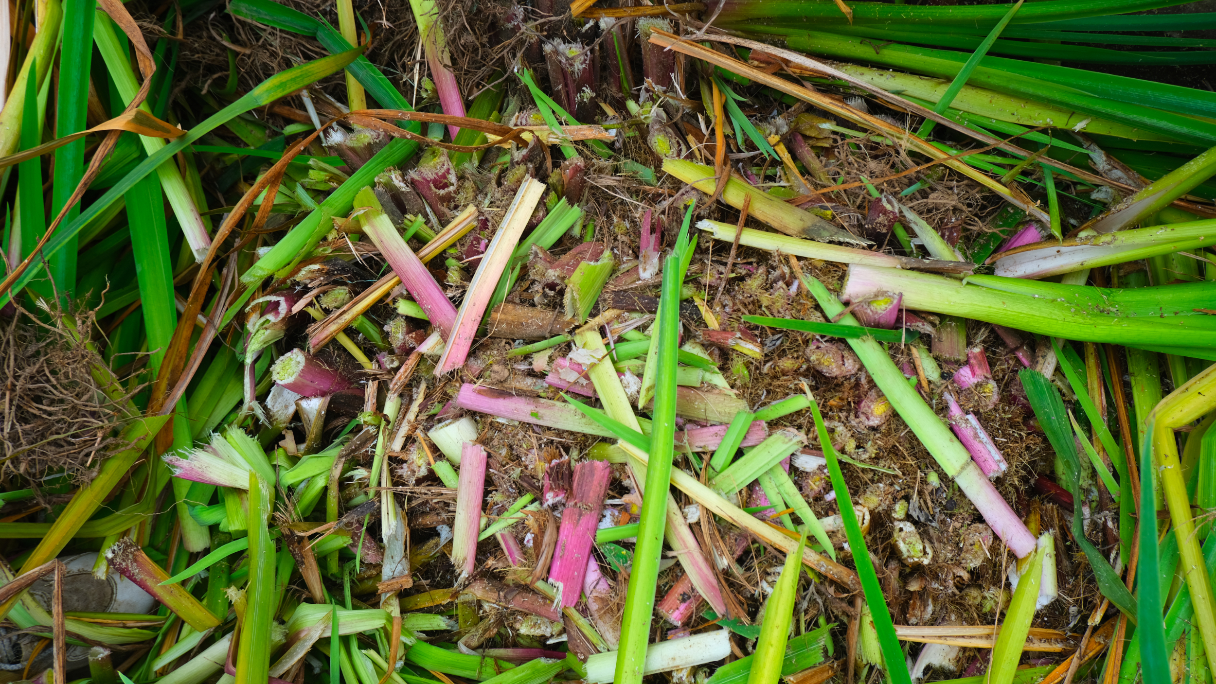 “喏,你看,我们只种了一棵苗下去,它就长成这么一大块。”其中一名正在收割的皮姓工人指着一株菖蒲对记者说道。这株菖蒲直径有半米长,直立的叶子已被割掉,剩下一整块根部牢牢抓着土地。“以前这附近的延河水挺脏的,这几年治理之后好多了,现在河里有上百只野鸭,还有青蛙、蛇,以前没有,现在多得很。”他说道。